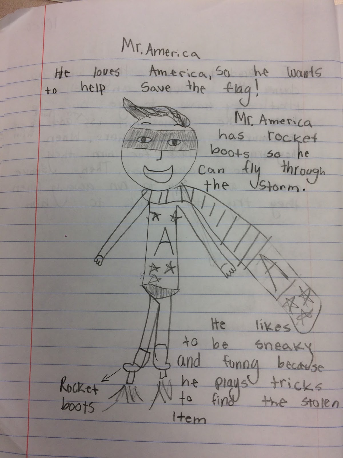 This is our last week of fiction for the quarter! Capture the Flag ended well. Check out our projects below. We also did some creative writing prompts based on the book. Kids wrote about a new hero, villain, or other important American artifact that could have been stolen.
